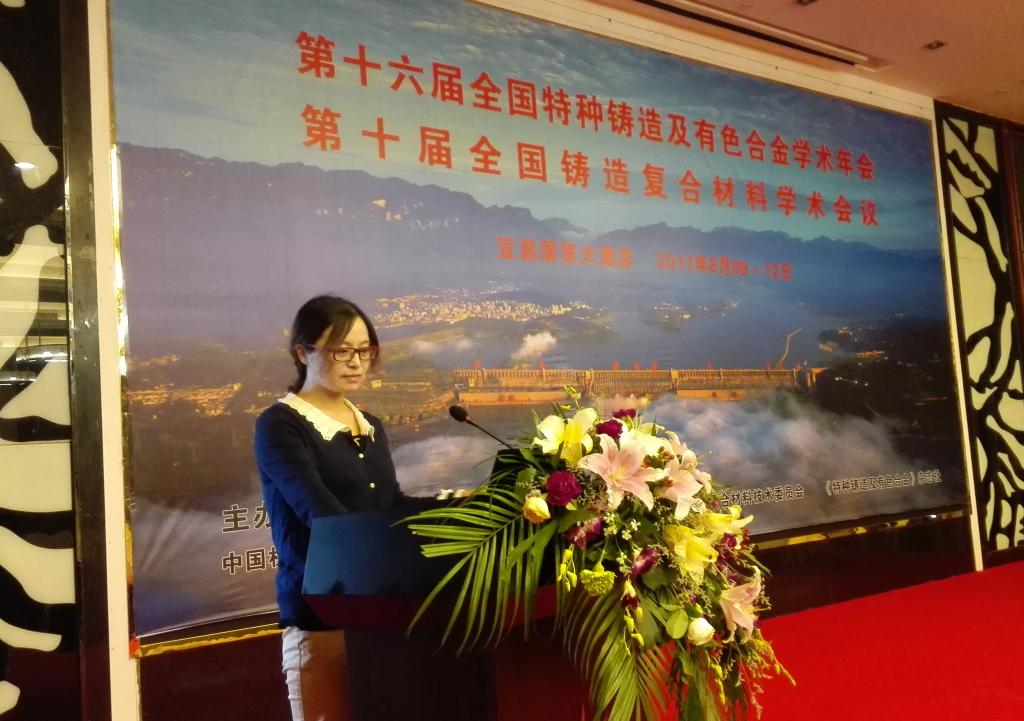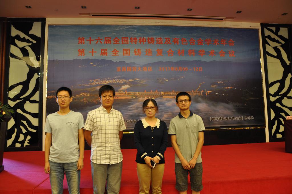 2017年第十六届全国特种铸造及有色合金学术年会、第十届全国铸造复合材料年会与2017年8月9日至12日在宜昌召开,来自清华大学、上海交通大学、哈尔滨工业大学、东南大学、华中科技大学、中南大学、华南理工大学、山东大学、大连理工大学、中北大学、北京交通大学、武汉理工大学、福州大学、合肥工业大学等30多所科研院校代表及近20家企业代表参加了会议。中心团队的赵宇宏教授、靳玉春教授、鲁若鹏老师、田晋忠博士生、陈利文博士生参加了该次会议。
