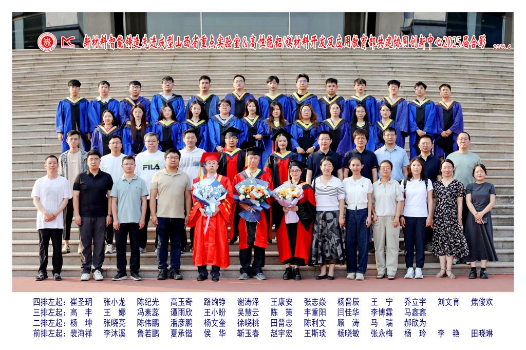 2025年6月,新材料智能铸造先进成型山西省重点实验室&教育部共建高性能铝/镁合金开发及应用协同创新中心共同迎来丰收时刻。实验室培养的26名硕士研究生及3名博士研究生顺利完成学业,正式毕业。